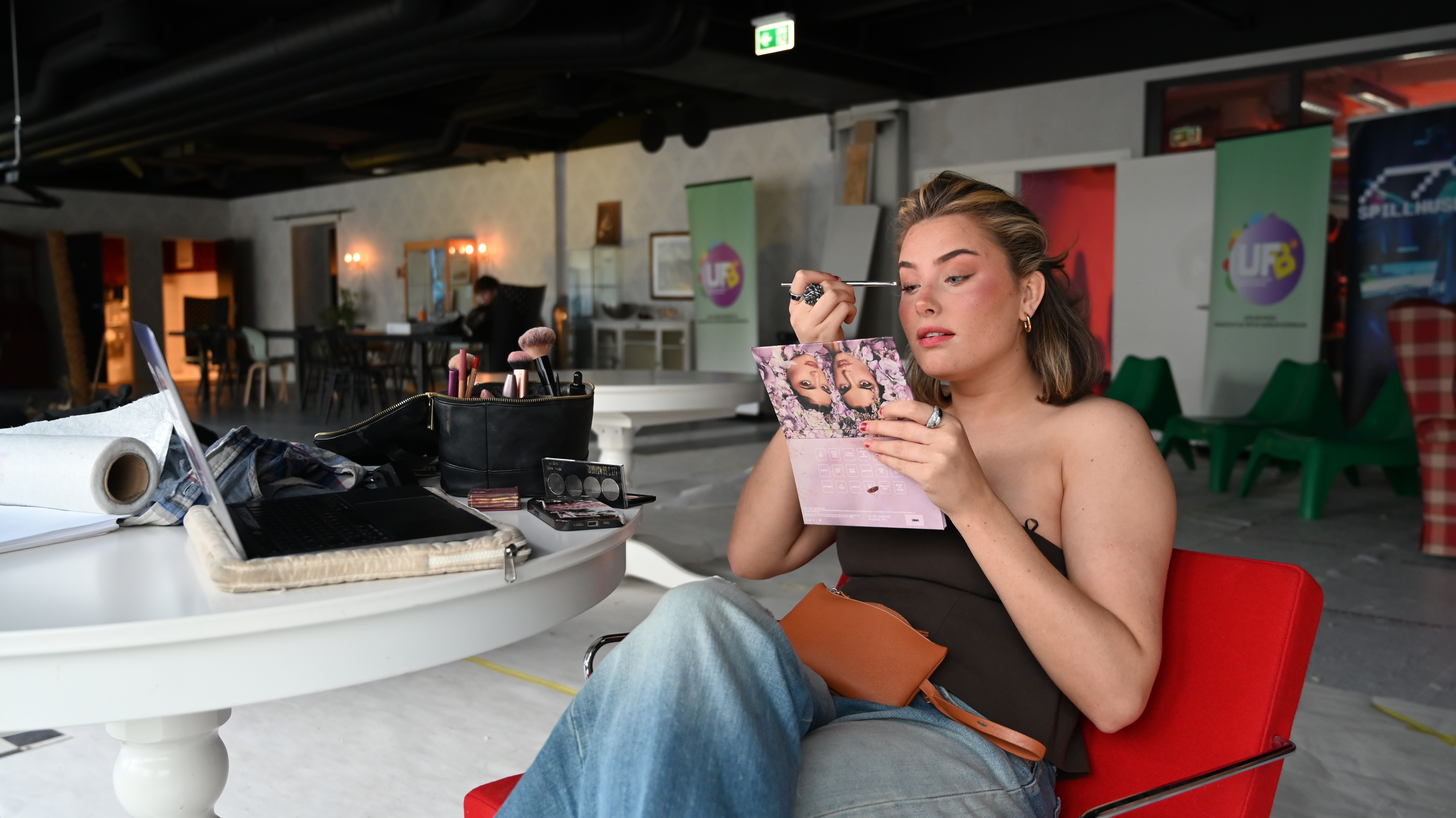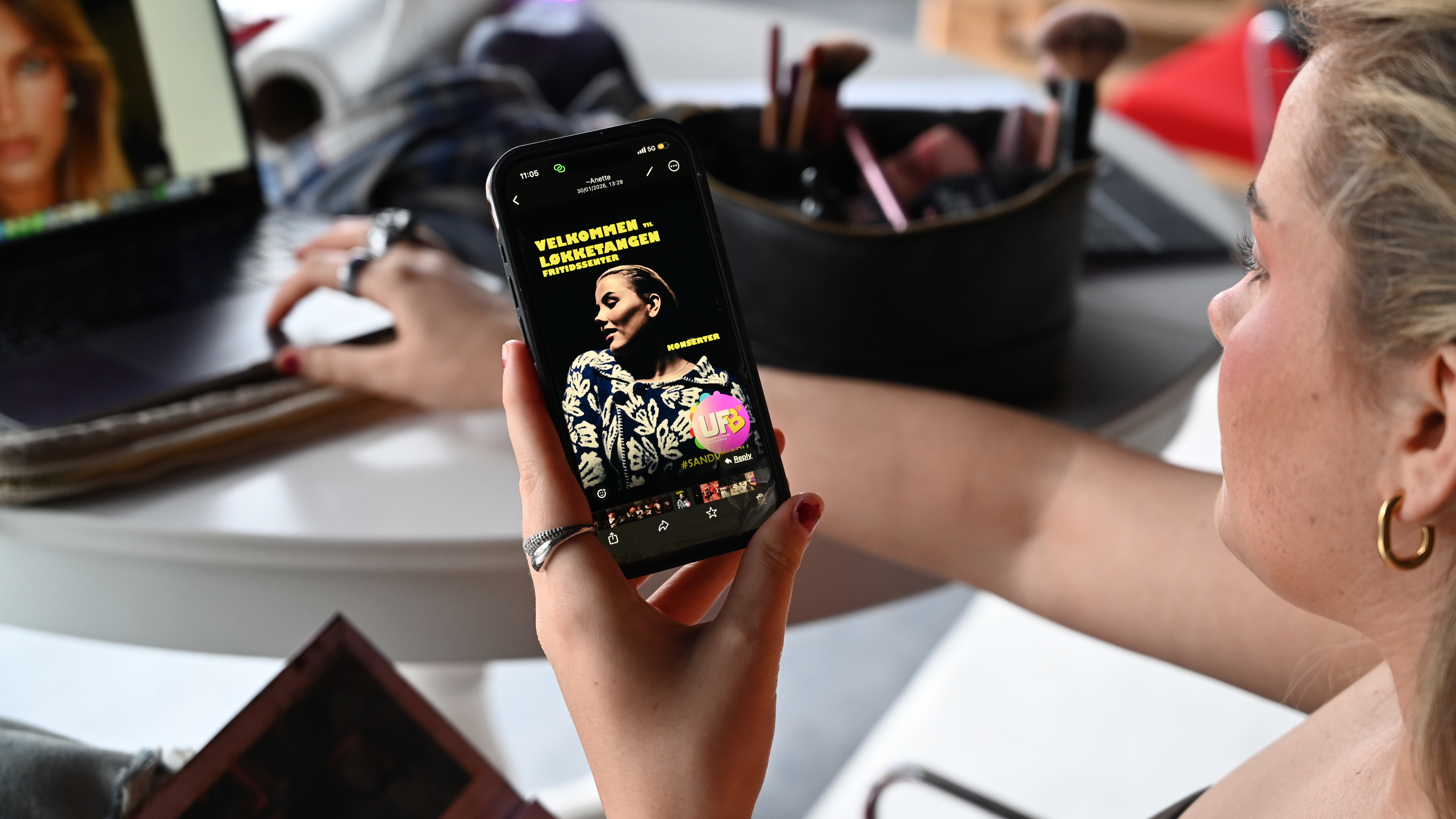 På fredager bruker elevene lokalene som studio. De får her blant annet praktisk opplæring og erfaring med lyssetting, bildeteknikk og mer. Denne dagen stiller Mie Svendsen Strand som modell.