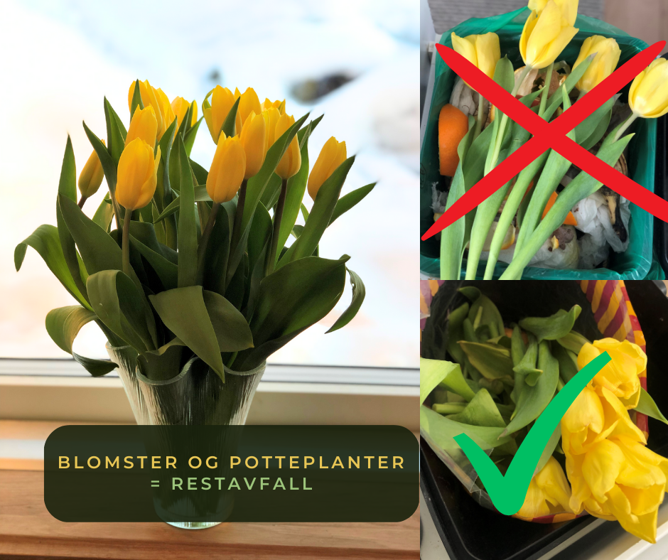Økologiske planter og blomster er ikke matavfall og skal derfor sorteres i restavfallet.